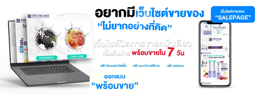 เราดูแลให้ตั้งแต่การจดโดเมน + โฮสติ้ง ออกแบบหน้าเว็บไซต์ และทำเว็บไซต์ Salepage สำหรับขายสินค้า เพื่อให้คุณปิดการขายได้อย่างมืออาชีพ