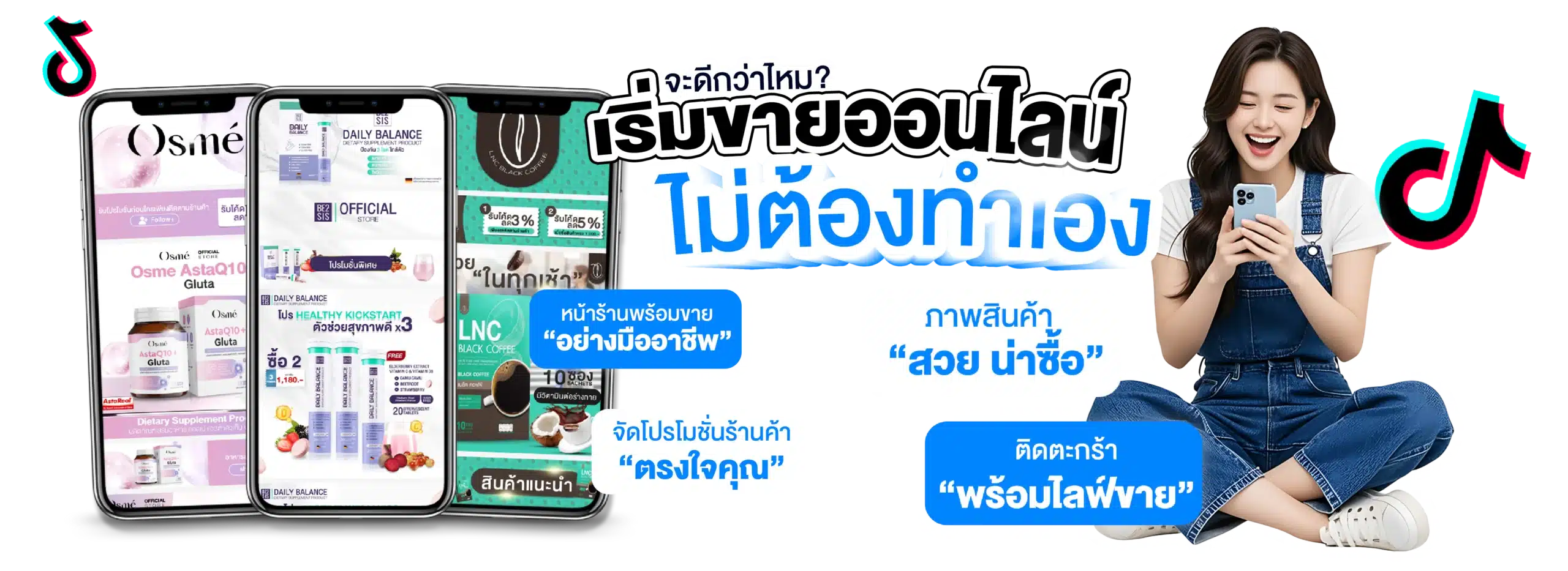 เราดูแลตั้งแต่ เปิดร้านค้า ตั้งค่าพื้นฐานร้านค้าลงสินค้า ออกแบบภาพสินค้า ออกแบบหน้าร้านค้า พร้อมจัดการระบบหลังบ้าน ติดตะกร้าพร้อมไลฟ์